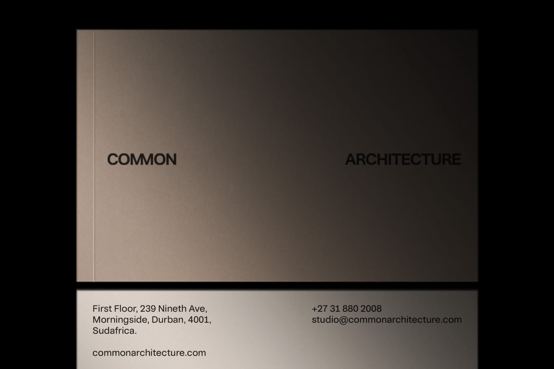 Common Architecture es un estudio de arquitectura en Sudáfrica cuyo enfoque parte de una idea simple y contundente: lo común como método. Su identidad de marca es funcional, directa y pensada para trabajar; acompaña el proyecto, no compite con él.